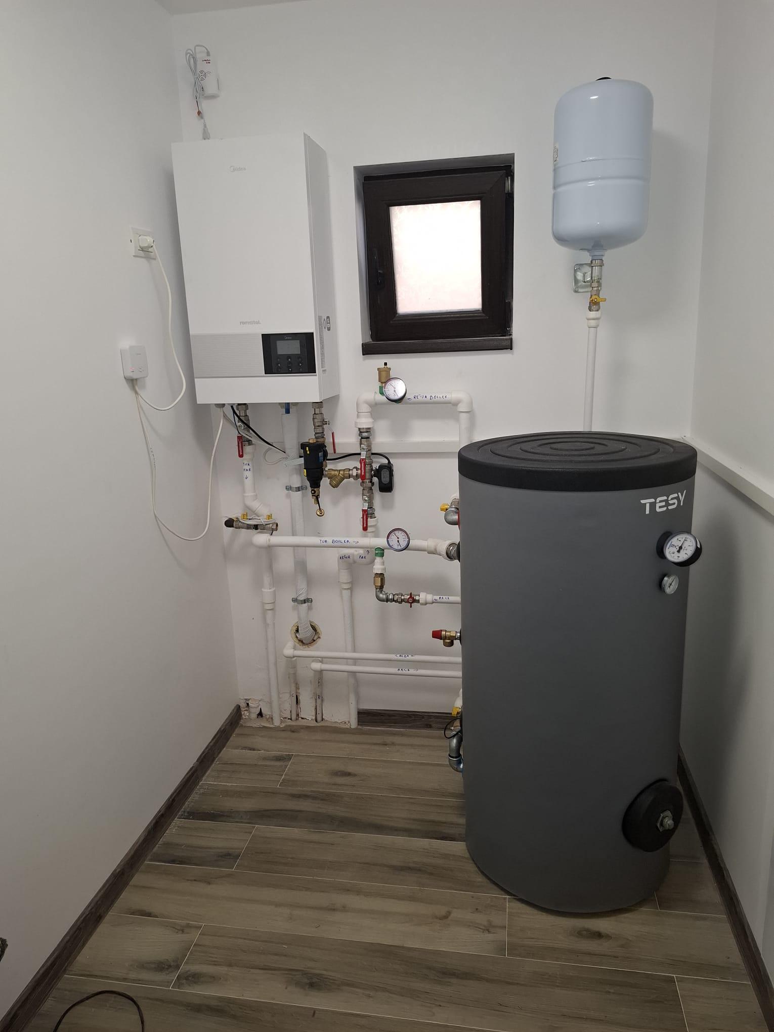 Transferul de căldură – energia este cedată apei din instalație prin schimbătorul de căldură.