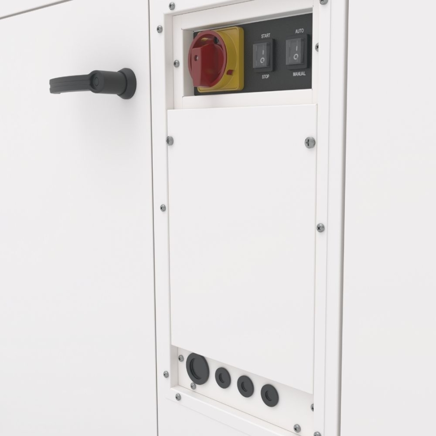 Unitatile DPD sunt echipate cu un sistem electronic de control care este complet incorporat in dispozitiv, care face ca functionarea sa fie complet automata. Dispozitivul are un panou extern cu display, care indeplineste rolurile de higrostat si termostat. Panoul permite citirea parametrilor curenti ai aerului interior din sala piscineisi permite editarea parametrilor setati ex. umiditatea dorita, temperatura si aportul de aer proaspat. Dezumidificatorul poate functiona cu un sistem BMS comunicand prin protocolul Modbus RTU. Dispozitivul are doua moduri principale de functionare, AUTO si MANUAL, conform carora utilizatorul poate seta functionarea continua sau intermitenta a ventilatorului in functie de necesarul de uscare si incalzire. Din selectia functionarii continue a ventilatorului, dezumidificatorul poate fi echipat cu un higrostat de tubulatura, daca citirea din panoul de control nu este posibila.