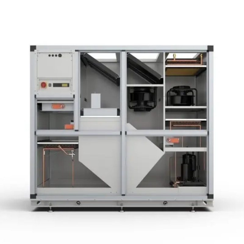 – echipate cu schimbatoare de caldura contra curent, certificate Eurovent, asigura pana la 98% recuperare de caldura, in functie de ciclurile de functionare.